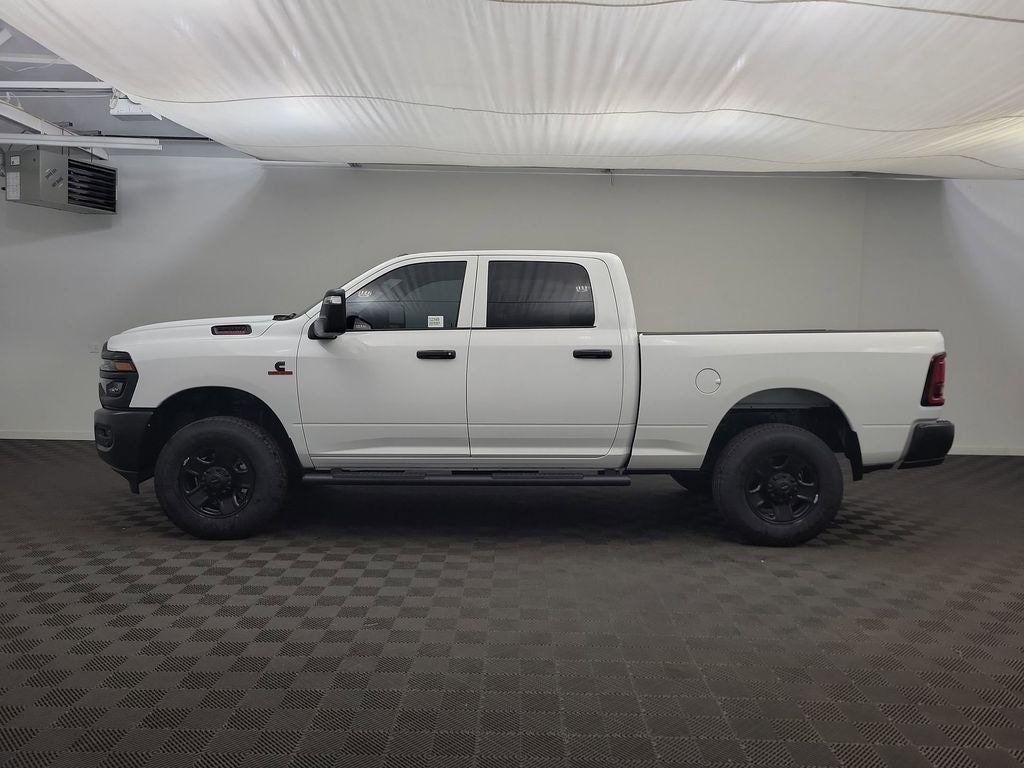 Cold Weather Group: Engine Block Heater; MOPAR Winter Front Grille Cover. Tradesman Level 1 Equipment Group: Convenience Group; Google Android Auto; SiriusXM Radio Service; Rear View Auto Dim Mirror; For Details Visit DriveUconnect.com; For More Info. Call 800-643-2112; Rear Power Sliding Window; Integrated Voice Command with Bluetooth; Connectivity - US/Canada; Emergency Vehicle Alert System (EVAS); Manual Folding Exterior Mirrors; 12 Touchscreen Display; Tinted Acoustic Windshield Glass; GPS Navigation; 4G LTE Wi-Fi Hot Spot; GPS Antenna Input; Exterior Mirrors with Heating Element; MOPAR Black Tubular Side Steps; SiriusXM with 360L; Global Telematics Box Module; Connected Travel and Traffic Services; Mirror Running Lights; Black Exterior Mirrors; Exterior 115V AC Outlet; Alexa Built-In; Carpet Floor Covering; Apple CarPlay; Power-Adjustable Convex Aux Mirrors; Off-Road Information Pages; Selectable Tire Fill Alert; Trailer Tow Pages; 400W Inverter; Cloth 40/20/40 Bench Seat; Disassociated Touchscreen Display; HD Radio; Power Heat Fold Telescopic Mirrors; Uconnect 5 Navigation with 12.0 Display Radio; Exterior Mirrors with Supplemental Signals; Exterior Mirrors Courtesy Lamps; Air Conditioning ATC with Dual Zone Control; 115-Volt Auxiliary Front Power Outlet; Manuarl Telescoping Mirrors; Power Adjust Mirrors; Front and Rear Floor Mats; ParkSense Front/rear Park Assist System. Quick Order Package 24A Tradesman. MOPAR Black Tubular Side Steps. Cloth 40/20/40 Bench Seat. **Equipment listed is based on original vehicle build and subject to change. Please confirm the accuracy of the included equipment by calling the dealer prior to purchase.**