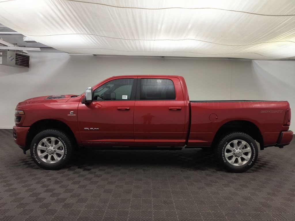 Cold Weather Group: Engine Block Heater; MOPAR Winter Front Grille Cover. Quick Order Package 24H Laramie. Sport Appearance Package: Body Color Grille Surround; Sport Performance Hood; Sport Decal; 20 X 8.0 Polished Aluminum Wheels. Towing Technology Group: Center Stop Lamp with Cargo View Camera; Surround View Camera System; Trailer Tire Pressure Monitoring System; Trailer Reverse Guidance. Laramie Level 2 Plus Equipment Group: Google Android Auto; SiriusXM Radio Service; Power Adjustable Pedals with Memory; For Details Visit DriveUconnect.com; For More Info. Call 800-643-2112; Integrated Voice Command with Bluetooth; Emergency Vehicle Alert System (EVAS); Power Deployable Running Boards; Auto Power-Folding Mirrors; Drowsy Driver Detection; Mirror Running Lights; MOPAR Deployable Bed Step; Alexa Built-In; Apple CarPlay; Power-Adjustable Convex Aux Mirrors; Active Lane Management System; Forward and Reverse Utility Lights; Disassociated Touchscreen Display; Remote Tailgate Release; 17 Speaker Harman/kardon Premium Sound; 2nd Row in Floor Storage Bins; Center Stop Lamp with Cargo View Camera; Rain Sensitive Windshield Wipers; LED Bed Lighting; Connectivity - US/Canada; Traffic Sign Recognition; GPS Navigation; 4G LTE Wi-Fi Hot Spot; Adaptive Steering System; GPS Antenna Input; Exterior Mirrors with Heating Element; Auto Dimming Exterior Mirrors; SiriusXM with 360L; Global Telematics Box Module; Connected Travel and Traffic Services; Foam Bottle Insert (door Trim Panel); Off-Road Information Pages; Selectable Tire Fill Alert; Trailer Tow Pages; Leather Trimmed Bucket Seats; HD Radio; 14.4 Touchscreen Display; Power Heat Fold Memory Telescopic Mirrors; Exterior Mirrors with Supplemental Signals; Exterior Mirrors Courtesy Lamps; Uconnect 5 Nav with 14.4 Display; MOPAR Spray in Bedliner; Auto High Beam Headlamp Control; Chrome Exterior Mirrors; Exterior Mirrors with Memory; Power Adjust Mirrors; Power Telescoping Mirrors; Auto Dimming Exterior Passenger Mirror; Auto Adjust in Reverse Exterior Mirrors. 20 X 8.0 Polished Aluminum Wheels. Power Sunroof. Power Deployable Running Boards. Leather Trimmed Bucket Seats. Center Stop Lamp with Cargo View Camera. Molten Red Pearlcoat. **Equipment listed is based on original vehicle build and subject to change. Please confirm the accuracy of the included equipment by calling the dealer prior to purchase.**