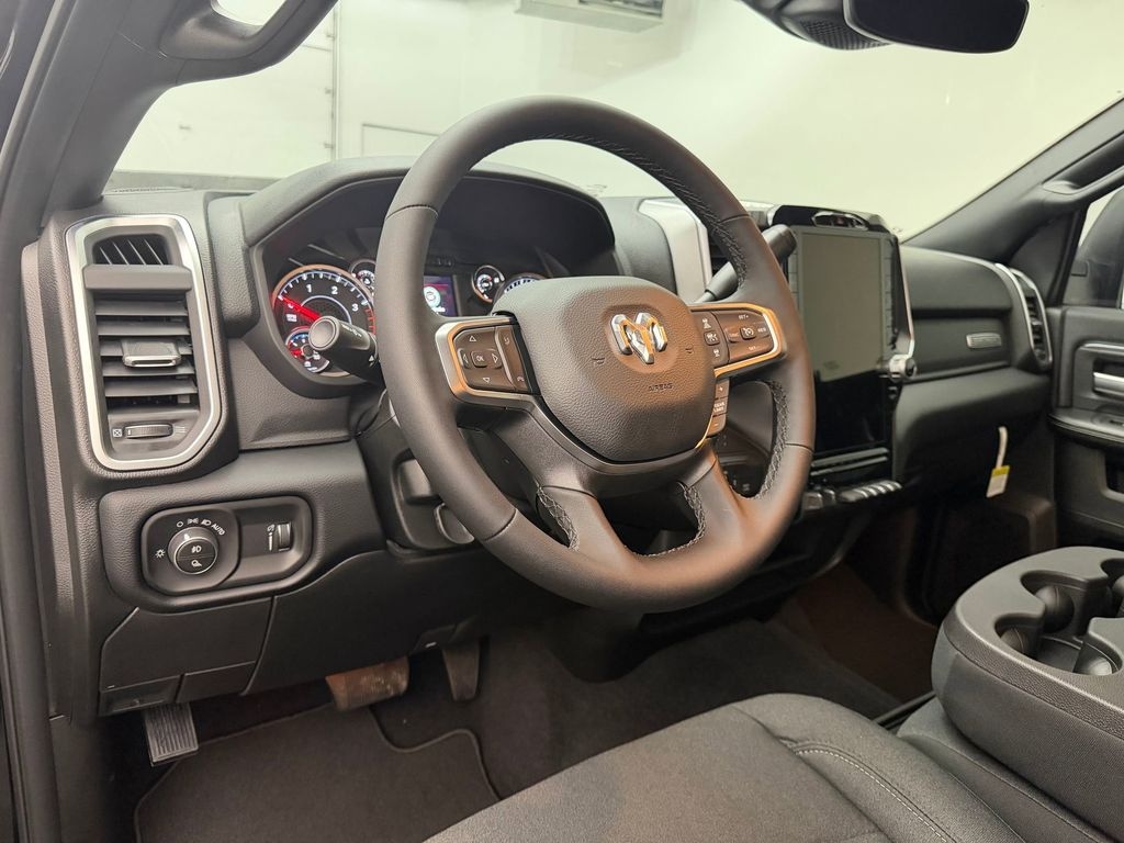 Quick Order Package 24Z Big Horn. Cold Weather Group: Engine Block Heater; MOPAR Winter Front Grille Cover. Big Horn Level 1 Plus Equipment Group: Google Android Auto; SiriusXM Radio Service; For Details Visit DriveUconnect.com; For More Info. Call 800-643-2112; Integrated Voice Command with Bluetooth; Emergency Vehicle Alert System (EVAS); 12 Touchscreen Display; Cloth 40/20/40 Premium Bench Seat; Glove Box Lamp; Auto Power-Folding Mirrors; Footwell Courtesy Lamp; Mirror Running Lights; MOPAR Deployable Bed Step; Alexa Built-In; Apple CarPlay; Power-Adjustable Convex Aux Mirrors; Forward and Reverse Utility Lights; Locking Lower Glove Box; Remote Start System; 9 Alpine Speakers with Subwoofer; Disassociated Touchscreen Display; Dual Glove Boxes; 2nd Row in Floor Storage Bins; Rear View Auto Dim Mirror; Rear Dome with On/off Switch Lamp; LED Bed Lighting; Connectivity - US/Canada; GPS Navigation; 4G LTE Wi-Fi Hot Spot; GPS Antenna Input; Exterior Mirrors with Heating Element; SiriusXM with 360L; Global Telematics Box Module; Connected Travel and Traffic Services; Foam Bottle Insert (door Trim Panel); Black Exterior Mirrors; Big Horn Instrument Panel Badge; Off-Road Information Pages; Selectable Tire Fill Alert; Trailer Tow Pages; HD Radio; Uconnect 5 Navigation with 12.0 Display Radio; Power Heated Fold Telescopic Mirrors; Exterior Mirrors with Supplemental Signals; Steering Wheel Mounted Audio Controls; Exterior Mirrors Courtesy Lamps; Air Conditioning ATC with Dual Zone Control; MOPAR Spray in Bedliner; Power Adjust Mirrors; Luxury Steering Wheel; Power Telescoping Mirrors. Heated Seats and Wheel Group: Heated Front Seats; Heated Steering Wheel. Quick Order Package 2UZ Big Horn. Cloth 40/20/40 Premium Bench Seat. Remote Start System. Diamond Black Crystal PC. **Equipment listed is based on original vehicle build and subject to change. Please confirm the accuracy of the included equipment by calling the dealer prior to purchase.**