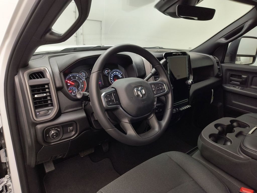 Cold Weather Group: Engine Block Heater; MOPAR Winter Front Grille Cover. Tradesman Level 1 Equipment Group: Convenience Group; Google Android Auto; SiriusXM Radio Service; Rear View Auto Dim Mirror; For Details Visit DriveUconnect.com; For More Info. Call 800-643-2112; Rear Power Sliding Window; Integrated Voice Command with Bluetooth; Connectivity - US/Canada; Emergency Vehicle Alert System (EVAS); Manual Folding Exterior Mirrors; 12 Touchscreen Display; Tinted Acoustic Windshield Glass; GPS Navigation; 4G LTE Wi-Fi Hot Spot; GPS Antenna Input; Exterior Mirrors with Heating Element; MOPAR Black Tubular Side Steps; SiriusXM with 360L; Global Telematics Box Module; Connected Travel and Traffic Services; Mirror Running Lights; Black Exterior Mirrors; Exterior 115V AC Outlet; Alexa Built-In; Carpet Floor Covering; Apple CarPlay; Power-Adjustable Convex Aux Mirrors; Off-Road Information Pages; Selectable Tire Fill Alert; Trailer Tow Pages; 400W Inverter; Cloth 40/20/40 Bench Seat; Disassociated Touchscreen Display; HD Radio; Power Heat Fold Telescopic Mirrors; Uconnect 5 Navigation with 12.0 Display Radio; Exterior Mirrors with Supplemental Signals; Exterior Mirrors Courtesy Lamps; Air Conditioning ATC with Dual Zone Control; 115-Volt Auxiliary Front Power Outlet; Manual Telescoping Mirrors; Power Adjust Mirrors; Front and Rear Floor Mats; ParkSense Front/rear Park Assist System. Quick Order Package 24A Tradesman. Dual Rear Wheels: Clearance Lamps; LT235/80R17E BSW All Season Tires; 17 Steel Spare Wheel; Box and Rear Fender Clearance Lamps; 6000# Front Axle with Hub Extension; 17 X 6.0 Black Painted Steel Wheels; Nexen Brand Tires; Black Wheel Center Hub; 14. 000 Lb GVWR; Rear Wheelhouse Liners. MOPAR Black Tubular Side Steps. Cloth 40/20/40 Bench Seat. 50 Gallon Fuel Tank. Rear Wheelhouse Liners. Clearance Lamps. **Equipment listed is based on original vehicle build and subject to change. Please confirm the accuracy of the included equipment by calling the dealer prior to purchase.**