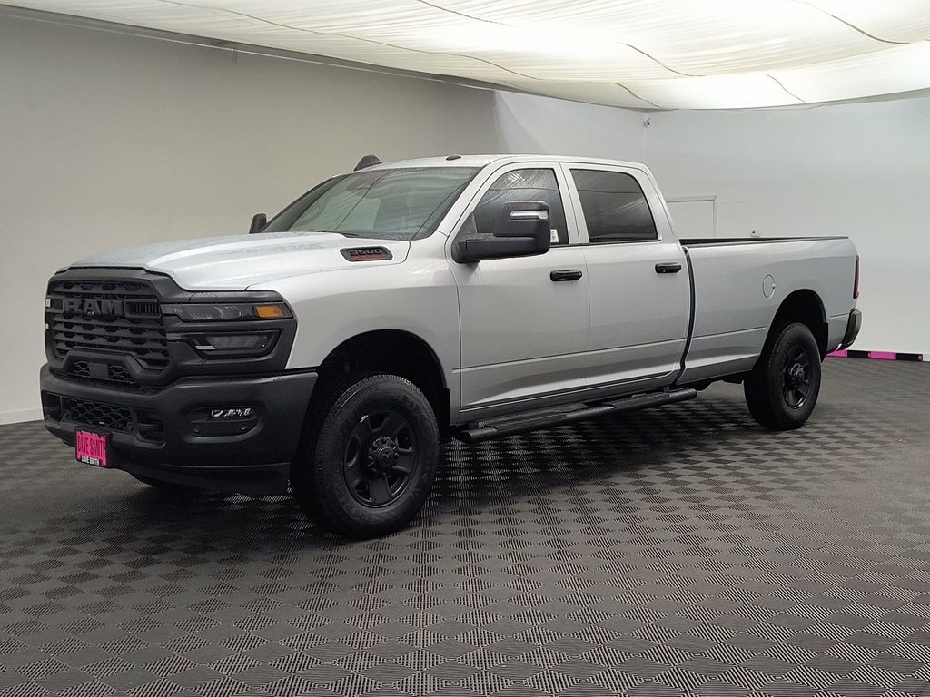 Tradesman Level 1 Equipment Group: Convenience Group; Google Android Auto; SiriusXM Radio Service; Rear View Auto Dim Mirror; For Details Visit DriveUconnect.com; For More Info. Call 800-643-2112; Rear Power Sliding Window; Integrated Voice Command with Bluetooth; Connectivity - US/Canada; Emergency Vehicle Alert System (EVAS); Manual Folding Exterior Mirrors; 12 Touchscreen Display; Tinted Acoustic Windshield Glass; GPS Navigation; 4G LTE Wi-Fi Hot Spot; GPS Antenna Input; Exterior Mirrors with Heating Element; MOPAR Black Tubular Side Steps; SiriusXM with 360L; Global Telematics Box Module; Connected Travel and Traffic Services; Mirror Running Lights; Black Exterior Mirrors; Exterior 115V AC Outlet; Alexa Built-In; Carpet Floor Covering; Apple CarPlay; Power-Adjustable Convex Aux Mirrors; Off-Road Information Pages; Selectable Tire Fill Alert; Trailer Tow Pages; 400W Inverter; Cloth 40/20/40 Bench Seat; Disassociated Touchscreen Display; HD Radio; Power Heat Fold Telescopic Mirrors; Uconnect 5 Navigation with 12.0 Display Radio; Exterior Mirrors with Supplemental Signals; Exterior Mirrors Courtesy Lamps; Air Conditioning ATC with Dual Zone Control; 115-Volt Auxiliary Front Power Outlet; Manuarl Telescoping Mirrors; Power Adjust Mirrors; Front and Rear Floor Mats; ParkSense Front/rear Park Assist System. Quick Order Package 2UA Tradesman. MOPAR Black Tubular Side Steps. Cloth 40/20/40 Bench Seat. Add Full Size Spare (if Box Delete). 50 Gallon Fuel Tank. Silver Zynith. Instrument Panel Mounted Auxiliary Switches. DOT Certified Roadside Safety Kit. Rear Wheelhouse Liners. **Equipment listed is based on original vehicle build and subject to change. Please confirm the accuracy of the included equipment by calling the dealer prior to purchase.**