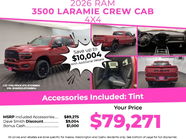 Protect it from unwanted accidents with a cutting edge backup camera system. The vehicle's Forward Collision Warning system alerts the driver to potential front-end collisions, enhancing safety. You'll never again be lost in a crowded city or a country region with the navigation system on this unit. Keep your hands warm all winter with a heated steering wheel in this vehicle . The leather seats in the Ram 3500 are a must for buyers looking for comfort, durability, and style. Start this model from inside with remote start. Bluetooth technology is built into this unit, keeping your hands on the steering wheel and your focus on the road. The vehicle offers Android Auto for seamless smartphone integration. Apple CarPlay: Seamless smartphone integration for the Ram 3500 - stay connected and entertained on the go! It has auto-adjust speed for safe following. This 2026 Ram 3500 excites both driver and bystanders with a polished red exterior with racy lines.