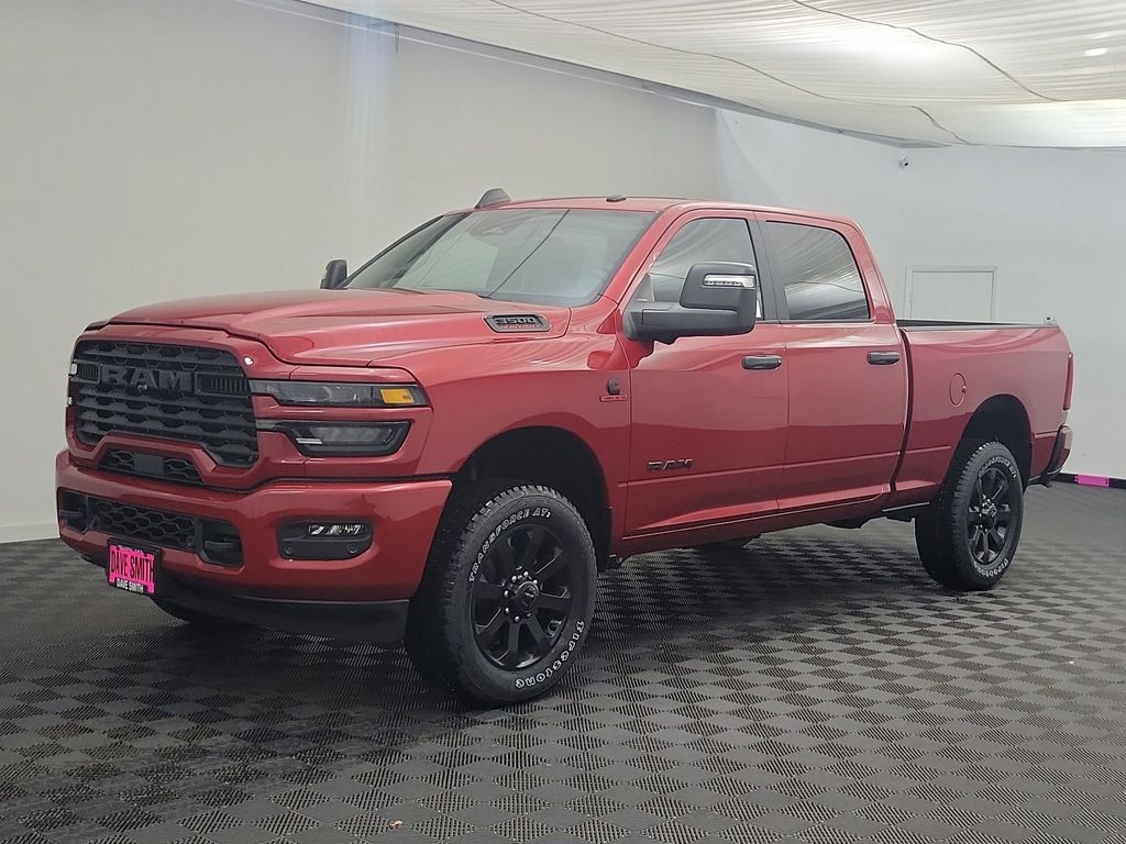 Quick Order Package 24Z Big Horn. Cold Weather Group: Engine Block Heater; MOPAR Winter Front Grille Cover. Night Edition: Firestone Brand Tires; Gloss Black Nostrils/molded in Color Black Grille; LT285/60R20E OWL On/off Road Tires; Black Exterior Truck Badging; 20 X 8.0 Black Painted Aluminum Wheels; Body Color Grille Surround; Black Interior Accents; Black Wheel Center Hub; Painted Front Bumper; Painted Rear Bumper. Big Horn Level 2 Plus Equipment Group: Google Android Auto; SiriusXM Radio Service; Surround View Camera System; Blind Spot and Cross Path Detection; For Details Visit DriveUconnect.com; Power Adjustable Pedals; For More Info. Call 800-643-2112; Integrated Voice Command with Bluetooth; Emergency Vehicle Alert System (EVAS); 12 Touchscreen Display; Glove Box Lamp; Auto Power-Folding Mirrors; Footwell Courtesy Lamp; Drowsy Driver Detection; Heated Front Seats; Mirror Running Lights; MOPAR Deployable Bed Step; Exterior 115V AC Outlet; Alexa Built-In; Apple CarPlay; Premium Cloth Bucket Seats; Power-Adjustable Convex Aux Mirrors; Active Lane Management System; Forward and Reverse Utility Lights; Locking Lower Glove Box; Remote Start System; 9 Alpine Speakers with Subwoofer; Disassociated Touchscreen Display; Dual Wireless Charging Pad; Trailer Tire Pressure Monitoring System; Dual Glove Boxes; 115-Volt Auxiliary Front Power Outlet; Universal Garage Door Opener; 2nd Row in Floor Storage Bins; Sun Visors with Illuminated Vanity Mirrors; Center Stop Lamp with Cargo View Camera; Rain Sensitive Windshield Wipers; Rear View Auto Dim Mirror; Rear Power Sliding Window; Rear Dome with On/off Switch Lamp; LED Bed Lighting; Connectivity - US/Canada; Traffic Sign Recognition; GPS Navigation; 4G LTE Wi-Fi Hot Spot; Adaptive Steering System; GPS Antenna Input; Exterior Mirrors with Heating Element; SiriusXM with 360L; Global Telematics Box Module; Connected Travel and Traffic Services; Heated Steering Wheel; Foam Bottle Insert (door Trim Panel); Black Exterior Mirrors; Dampened Tailgate; Trailer Reverse Guidance; Big Horn Instrument Panel Badge; Off-Road Information Pages; Selectable Tire Fill Alert; Trailer Tow Pages; 400W Inverter; HD Radio; Uconnect 5 Navigation with 12.0 Display Radio; Power Heated Fold Telescopic Mirrors; Exterior Mirrors with Supplemental Signals; Steering Wheel Mounted Audio Controls; Exterior Mirrors Courtesy Lamps; Air Conditioning ATC with Dual Zone Control; MOPAR Spray in Bedliner; Auto High Beam Headlamp Control; Cluster 7.0 TFT Color Display; Power Adjust Mirrors; Luxury Steering Wheel; Power Telescoping Mirrors. Quick Order Package 2UZ Big Horn. Blind Spot and Cross Path Detection. Premium Cloth Bucket Seats. Remote Start System. Molten Red Pearlcoat. Power 2-Way Driver Lumbar Adjust. **Equipment listed is based on original vehicle build and subject to change. Please confirm the accuracy of the included equipment by calling the dealer prior to purchase.**