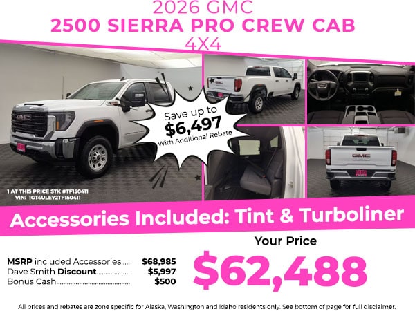 Apple CarPlay: Seamless smartphone integration for the GMC Sierra - stay connected and entertained on the go! This GMC Sierra offers Android Auto for seamless smartphone integration. Protect the GMC Sierra from unwanted accidents with a cutting edge backup camera system. This vehicle's Lane Departure Warning helps keep you in your lane. This model features a hands-free Bluetooth phone system. This 3/4 ton pickup embodies class and sophistication with its refined white exterior. Keep safely connected while in the GMC Sierra with OnStar. You may enjoy services like Automatic Crash Response, Navigation, Roadside Assistance and Hands-Free Calling. Greater towing safety becomes standard with the installed trailer brake. This 2026 GMC Sierra 2500 has four wheel drive capabilities. This 3/4 ton pickup has a V8, 6.6L high output engine. The Electronic Stability Control will keep you on your intended path. The high efficiency automatic transmission shifts smoothly and allows you to relax while driving.
