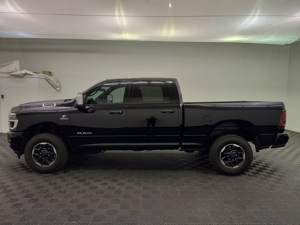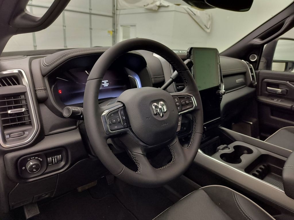 Cold Weather Group: Engine Block Heater; MOPAR Winter Front Grille Cover. Laramie Level 2 Equipment Group: Google Android Auto; SiriusXM Radio Service; Rain Sensitive Windshield Wipers; Power Adjustable Pedals with Memory; Integrated Voice Command with Bluetooth; Connectivity - US/Canada; Emergency Vehicle Alert System (EVAS); Auto Power-Folding Mirrors; GPS Navigation; 4G LTE Wi-Fi Hot Spot; GPS Antenna Input; Exterior Mirrors with Heating Element; Auto Dim Exterior Mirror; SiriusXM with 360L; Anti-Spin Differential Rear Axle; Global Telematics Box Module; Connected Travel and Traffic Services; Mirror Running Lights; Foam Bottle Insert (door Trim Panel); Alexa Built-In; Apple CarPlay; Power Adjustable Convex Aux Mirrors; Off-Road Info Pages; Forward and Reverse Utility Lights; Selectable Tire Fill Alert; Trailer Tow Pages; Disassociated Touchscreen Display; Leather Trimmed Bucket Seats; HD Radio; 14.4 Touchscreen Display; Power Heated Fold Telescopic Mirrors with Memory; Exterior Mirrors with Supplemental Signals; Exterior Mirrors Courtesy Lamps; Uconnect 5 Nav with 14.4 Display; Remote Tailgate Release; 17 Speaker Harman/kardon Premium Sound; Auto High Beam Headlamp Control; Chrome Exterior Mirrors; Exterior Mirrors with Memory; Power Adjust Mirrors; 2nd Row in Floor Storage Bins; Power Telescoping Mirrors; Auto Dim Exterior Passenger Mirror; Auto Adjust in Reverse Exterior Mirrors. Quick Order Package 24H Laramie. Towing Technology Group: Center Stop Lamp with Cargo View Camera; Surround View Camera System; Trailer Tire Pressure Monitoring System; Trailer Reverse Guidance. Leather Trimmed Bucket Seats. Center Stop Lamp with Cargo View Camera. Diamond Black Crystal PC. **Equipment listed is based on original vehicle build and subject to change. Please confirm the accuracy of the included equipment by calling the dealer prior to purchase.**