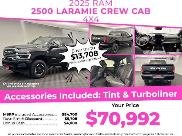 You'll never again be lost in a crowded city or a country region with the navigation system on this model. The leather seats in this 3/4 ton pickup are a must for buyers looking for comfort, durability, and style. Bluetooth technology is built into this vehicle, keeping your hands on the steering wheel and your focus on the road. An off-road package is equipped on it. Enjoy your music even more with the premium sound system in this Ram 2500. This Ram 2500 has automated speed control that adjusts to maintain a safe following distance, enhancing highway driving convenience. This 3/4 ton pickup's Forward Collision Warning system alerts the driver to potential front-end collisions, enhancing safety. This model is equipped with the latest generation of XM/Sirius Radio. This model offers Apple CarPlay for seamless connectivity. The vehicle comes equipped with Android Auto for seamless smartphone integration on the road. Protect this vehicle from unwanted accidents with a cutting edge backup camera system.