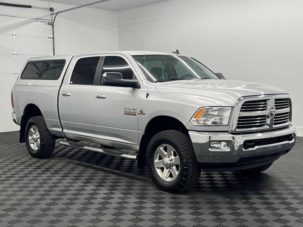 with XM/Sirus Satellite Radio you are no longer restricted by poor quality local radio stations while driving this model. Anywhere on the planet, you will have hundreds of digital stations to choose from. The state of the art park assist system will guide you easily into any spot. This 3/4 ton pickup features a hands-free Bluetooth phone system. This unit has a clean CARFAX vehicle history report. Protect it from unwanted accidents with a cutting edge backup camera system. Good News! This certified CARFAX 1-owner vehicle has only had one owner before you. Start the Ram 2500 from inside with remote start. When you encounter slick or muddy roads, you can engage the four wheel drive on it and drive with confidence. The vehicle has a 6 Cyl, 6.7L high output engine. Greater towing safety becomes standard with the installed trailer brake. This 2015 Ram 2500 gleams with an elegant silver clear coated finish.