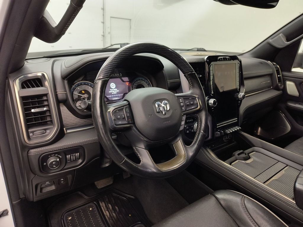 This 1/2 ton pickup's Forward Collision Warning feature alerts drivers to potential front-end collisions. The Ram 1500 has auto-adjust speed for safe following. Start this 1/2 ton pickup from inside with remote start. The leather seats in this Ram 1500 are a must for buyers looking for comfort, durability, and style. This Ram 1500 features a hands-free Bluetooth phone system. Protect this unit from unwanted accidents with a cutting edge backup camera system. This model offers Apple CarPlay for seamless connectivity. This vehicle has a premium sound system installed. This Ram 1500 is equipped with the latest generation of XM/Sirius Radio. This vehicle is a certified CARFAX 1-owner. The installed navigation system will keep you on the right path. Keep your hands warm all winter with a heated steering wheel in this 1/2 ton pickup . It offers Android Auto for seamless smartphone integration. Lane Keep Assist in it helps maintain safe driving by gently steering to stay within the lane.