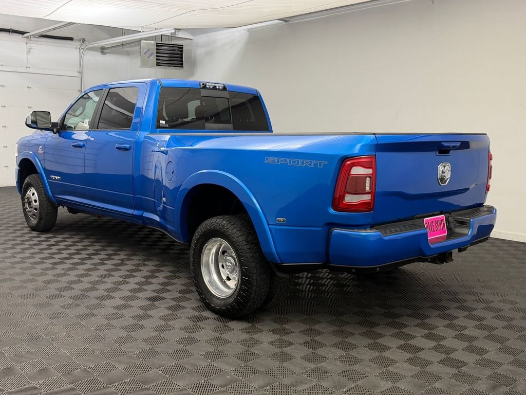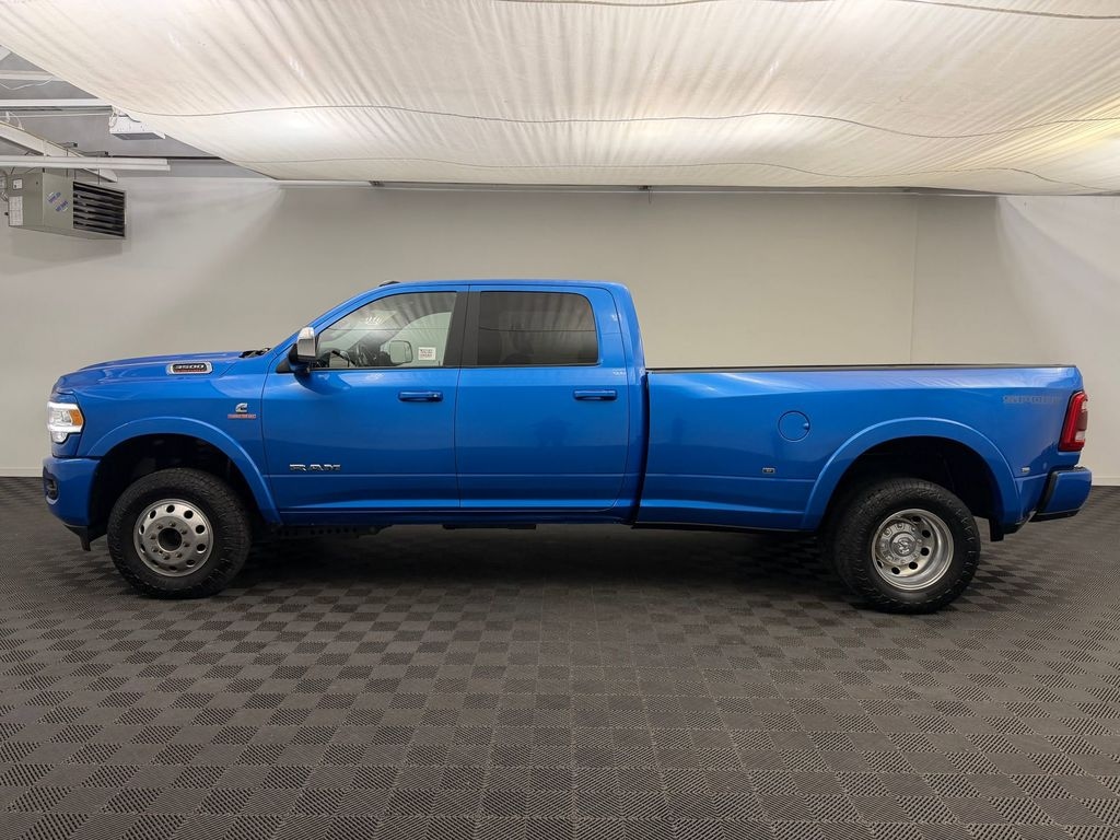 Cold Weather Group: Engine Block Heater; MOPAR Winter Front Grille Cover. Quick Order Package 2HH Laramie. Laramie Level 2 Equipment Group: Remote Tailgate Release; 17 Speaker Harman Kardon Premium Sound; Auto High Beam Headlamp Control; Blind Spot and Cross Path Detection; Rain Sensitive Windshield Wipers; Heated Second Row Seats; Power Adjustable Pedals with Memory; Foam Bottle Insert (door Trim Panel); 2nd Row in Floor Storage Bins; Radio/driver Seat/mirrors/pedals Memory; Ventilated Front Seats. Sport Appearance Package: Body Color Grille Surround; Black Interior Accents; Sport Decal; Body Color Door Handles. Towing Technology Group: Center Stop Lamp with Cargo View Camera; Mirror-Mounted Aux Reverse Lamps; Surround View Camera System; Exterior Mirrors with Memory; Power Chrome Tow Mirrors with Convex Spotter and Memory; Trailer Reverse Guidance; Power Adjustable Convex Aux Mirrors. Dual Rear Wheels: Clearance Lamps; LT235/80R17E BSW AS Tires; Tire Pressure Monitoring Delete; 17 Steel Spare Wheel; Box and Rear Fender Clearance Lamps; 6000# Front Axle with Hub Extension; 17 X 6.0 Polished Aluminum Wheels; 11.50 Dual Wheels Rear Axle; 14. 000 lbs GVWR; Rear Wheelhouse Liners. Uconnect Radio 12.0 with Navigation. Auto Level Rear Air Suspension. Power Sunroof. Blind Spot and Cross Path Detection. Leather Trimmed Bucket Seats. 5th Wheel/gooseneck Towing Prep Group. Center Stop Lamp with Cargo View Camera. 50 Gallon Fuel Tank. MOPAR Front and Rear Rubber Floor Mats. 4.10 Axle Ratio. Hydro Blue Pearlcoat. Hydro Blue Pearlcoat. Clearance Lamps. **Equipment listed is based on original vehicle build and subject to change. Please confirm the accuracy of the included equipment by calling the dealer prior to purchase.**