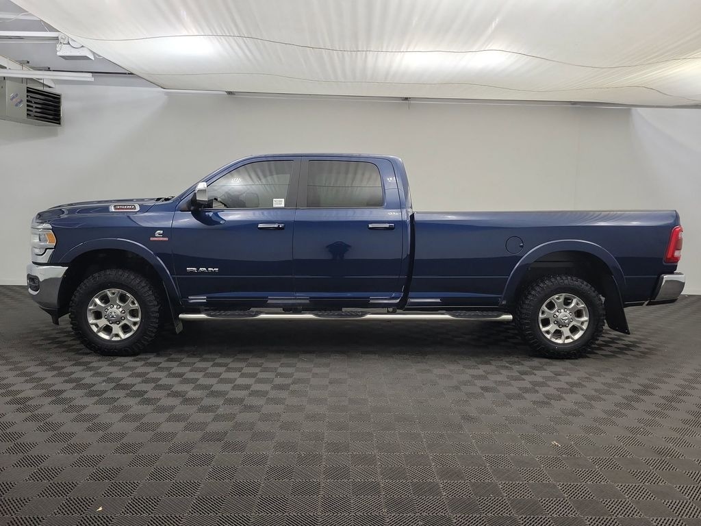 Cold Weather Group: Engine Block Heater; MOPAR Winter Front Grille Cover. Quick Order Package 2HH Laramie. Laramie Level B Equipment Group: SiriusXM Satellite Radio; Mirror-Mounted Aux Reverse Lamps; Rain Sensitive Windshield Wipers; Power Adjustable Pedals with Memory; Power Chrome Tow Mirrors with Convex Spotter and Memory; Ventilated Front Seats; Remote Tailgate Release; 17 Speaker Harman Kardon Premium Sound; Auto High Beam Headlamp Control; Chrome Exterior Mirrors; Exterior Mirrors with Memory; Heated Second Row Seats; Foam Bottle Insert (door Trim Panel); 2nd Row in Floor Storage Bins; Radio/driver Seat/mirrors/pedals Memory; Uconnect 5 Navigation Radio with 8.4 Display; Power Adjustable Convex Aux Mirrors. Uconnect 5 Navigation Radio with 8.4 Display. Leather Trimmed Bucket Seats. LT275/70R18E OWL On/off Road Tires. 50 Gallon Fuel Tank. Patriot Blue Pearlcoat. Patriot Blue Pearlcoat. LED Bed Lighting. Instrument Panel Mounted Auxiliary Switches. **Equipment listed is based on original vehicle build and subject to change. Please confirm the accuracy of the included equipment by calling the dealer prior to purchase.**