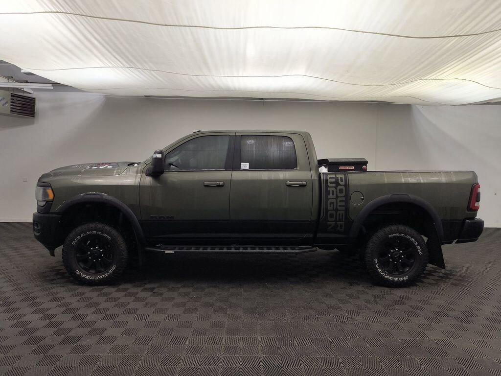 Quick Order Package 2GP Power Wagon: 8. 565 lbs GVWR; Power Wagon Instrument Panel Spec Plate; MOPAR Power Wagon Decal; RAM Articulink Suspension; 17 Steel Spare Wheel; Front Disconnecting Stabilizer Bar; Instrument Cluster Theme 5 - Power Wagon; Painted Semi-Texture Film Instrument Panel Bezels; Raised Ride Height; Power Wagon Off Road Group; Power Wagon Tailgate Decal; Power Wagon Vertical Bar Grille with RAM. Safety Group: Auto High Beam Headlamp Control; Blind Spot and Cross Path Detection; Rain Sensitive Windshield Wipers; Adaptive Cruise Control with Stop; Adaptive Steering System; Full Speed Forward Collision Warning Plus; Lane Keep Assist. Level 2 Equipment Group: Google Android Auto; SiriusXM Radio Service; Power Adjustable Pedals with Memory; For Details. Visit DriveUconnect.com; For More Info. Call 800-643-2112; Integrated Voice Command with Bluetooth; 12 Touchscreen Display; Auto Power-Folding Mirrors; Electric Shift-On-the-fly Transfer Case; Mirror Running Lights; Alexa Built-In; Security Alarm; Apple CarPlay; Power Adjustable Convex Aux Mirrors; Premium Overhead Console; Forward and Reverse Utility Lights; Disassociated Touchscreen Display; 17 Speaker Harman/kardon Premium Sound; LED Interior Lighting; LED Dome Lamp with On/off Switch; Black Rotary Shifter with Silver Stripe; Rear Window Defroster; Rain Sensitive Windshield Wipers; Rear Power Sliding Window; Connectivity - US/Canada; Body Color Door Handles; GPS Navigation; 4G LTE Wi-Fi Hot Spot; GPS Antenna Input; Overhead LED Lamps; Exterior Mirrors with Heating Element; Auto Dim Exterior Mirror; SiriusXM with 360L; Global Telematics Box Module; Bi-Function LED Projector Headlamps; Leather Wrapped Grab Handle; Connected Travel and Traffic Services; Black Exterior Mirrors; Off-Road Information Pages; Selectable Tire Fill Alert; Trailer Tow Pages; HD Radio; Uconnect 5 Navigation with 12.0 Display Radio; Leather Trimmed Bucket Seats; Power Heated Fold Telescopic Mirrors with Memory; Exterior Mirrors with Supplemental Signals; Front Electric Winch; Exterior Mirrors Courtesy Lamps; Remote Proximity Keyless Entry; Auto High Beam Headlamp Control; Exterior Mirrors with Memory; Luxury Door Trim Panel; Power Adjust Mirrors; Aluminum Litho Instrument Panel Bezels with Black Trim; Front Door Accent Lighting; Power Telescoping Mirrors; Auto Dim Exterior Passenger Mirror; Rear Door Accent Lighting; Front and Rear Floor Mats; Auto Adjust in Reverse Exterior Mirrors. Front Electric Winch. 17 Speaker Harman/kardon Premium Sound. MOPAR Spray in Bedliner. Blind Spot and Cross Path Detection. Adaptive Steering System. Olive Green Pearlcoat. Olive Green Pearlcoat. Security Alarm. 4.10 Axle Ratio. **Equipment listed is based on original vehicle build and subject to change. Please confirm the accuracy of the included equipment by calling the dealer prior to purchase.**