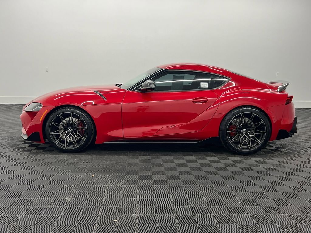 The leather seats in this model are a must for buyers looking for comfort, durability, and style. The installed navigation system will keep you on the right path. This small car has a clean CARFAX vehicle history report. It's blind spot monitor enhances safety. Apple CarPlay: Seamless smartphone integration for the Toyota GR Supra - stay connected and entertained on the go! Bluetooth technology is built into the Toyota GR Supra, keeping your hands on the steering wheel and your focus on the road. The vehicle has automated speed control that adjusts to maintain a safe following distance, enhancing highway driving convenience. This unit offers Automatic Climate Control for personalized comfort. See what's behind you with the back up camera on it. The state of the art park assist system will guide you easily into any spot. It gleams with a flashy red exterior. This model has a 6 Cyl, 3.0L high output engine.
